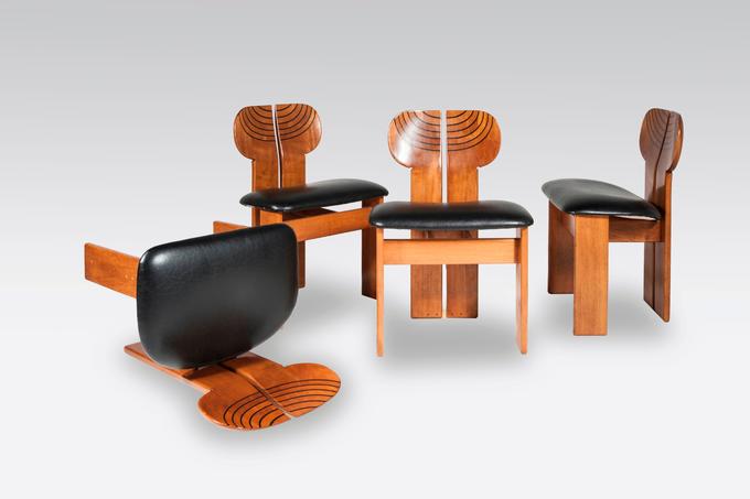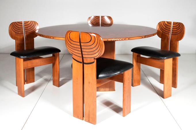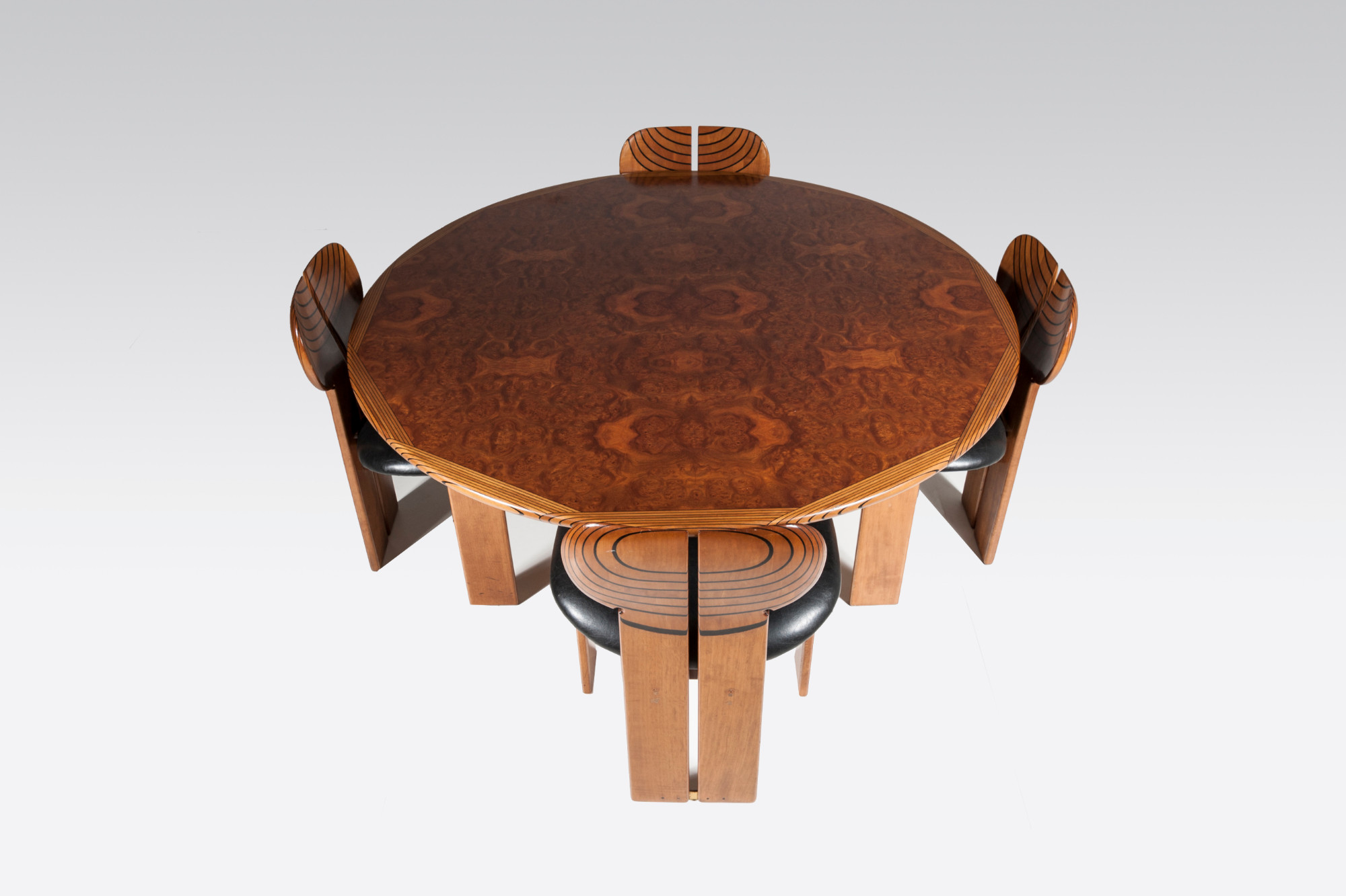 4 chairs and Circular Dining table Model "Africa" by Tobia et Afra Scarpa for Maxalto.