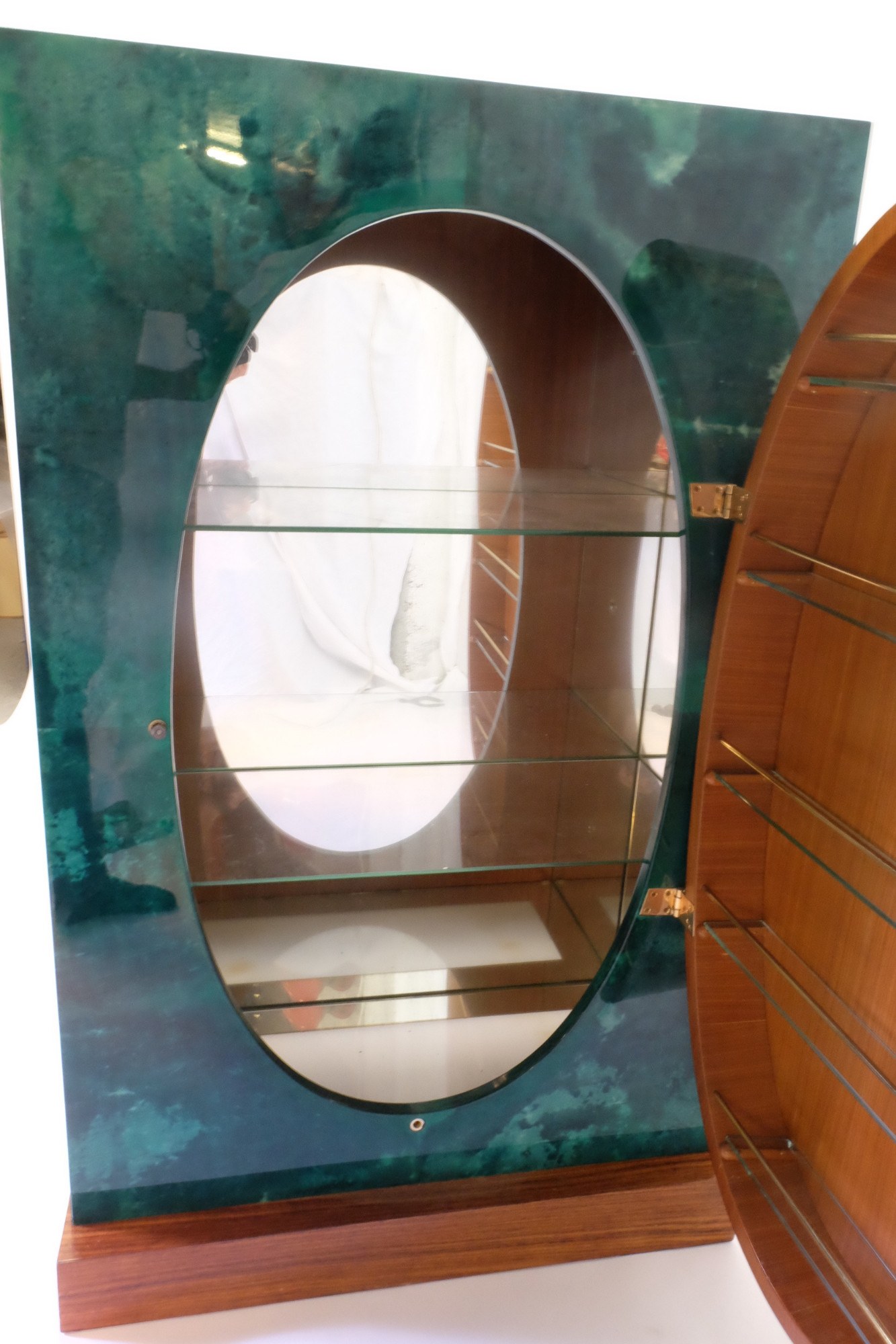 Aldo Tura Cabinet Bar In Green Goatskins