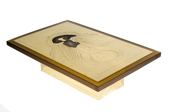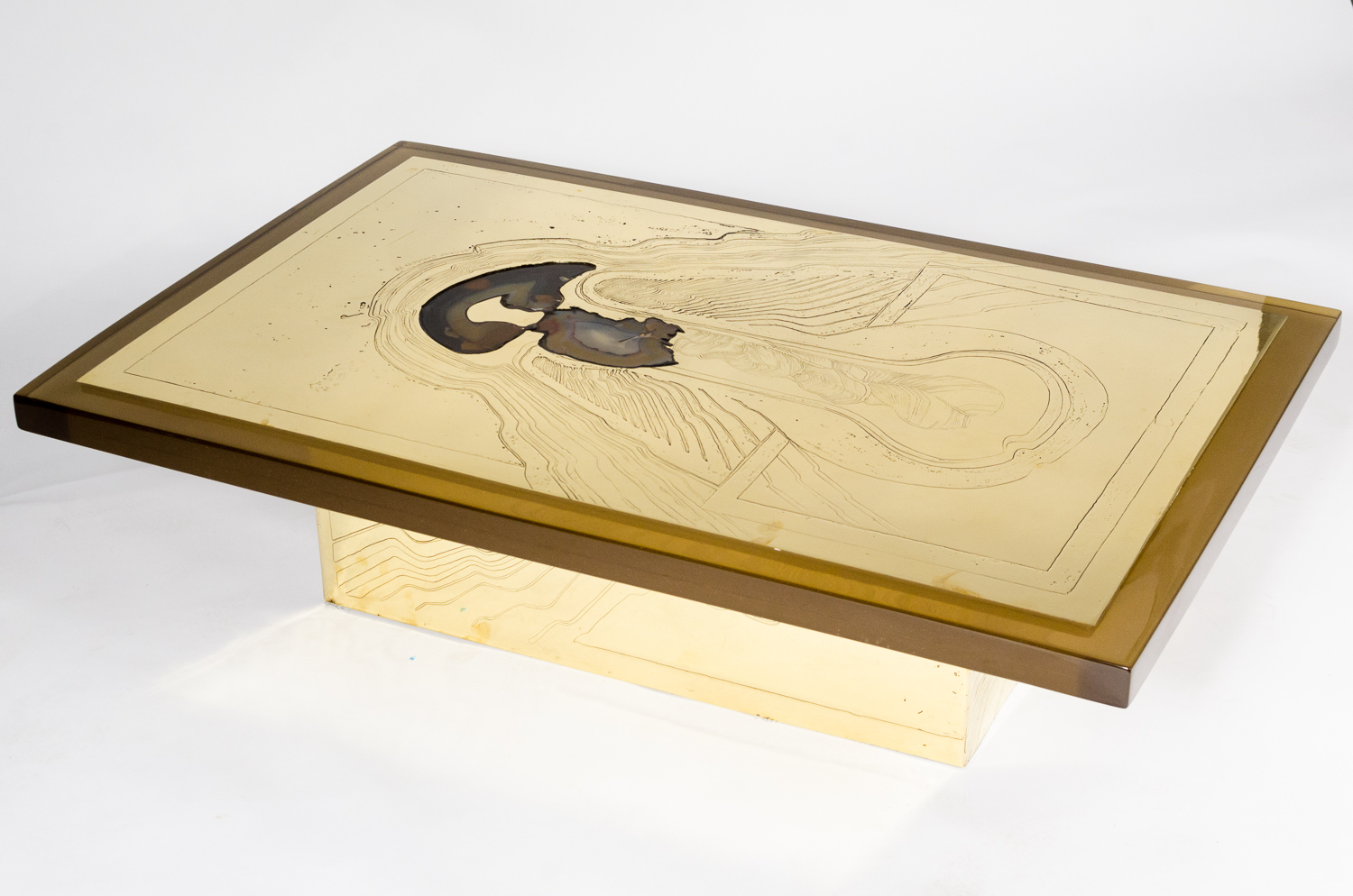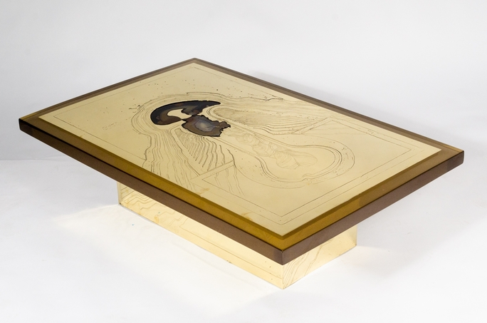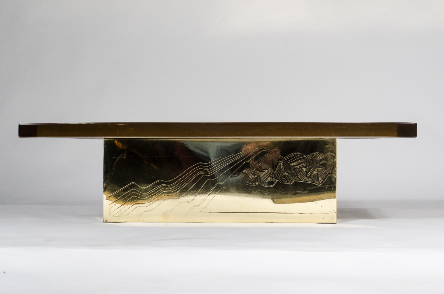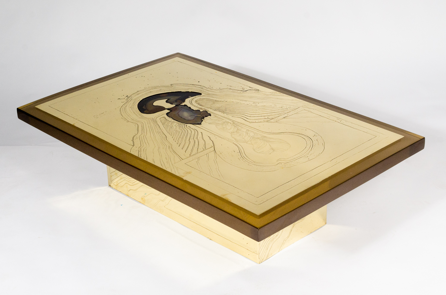 Etched Brass Coffee Table By Armand Jonckers circa 1973