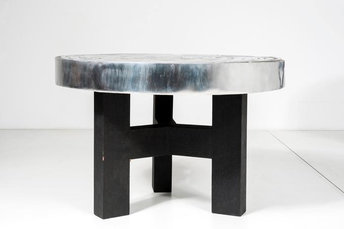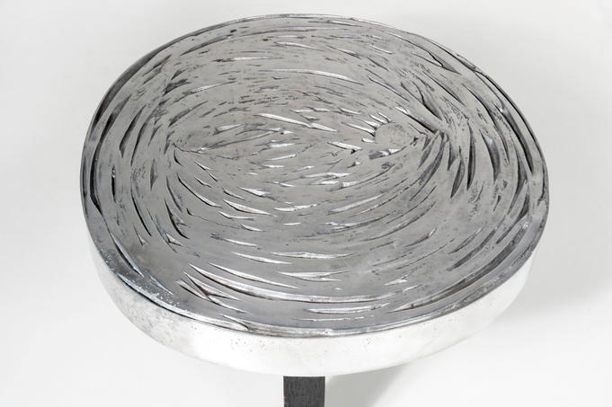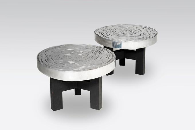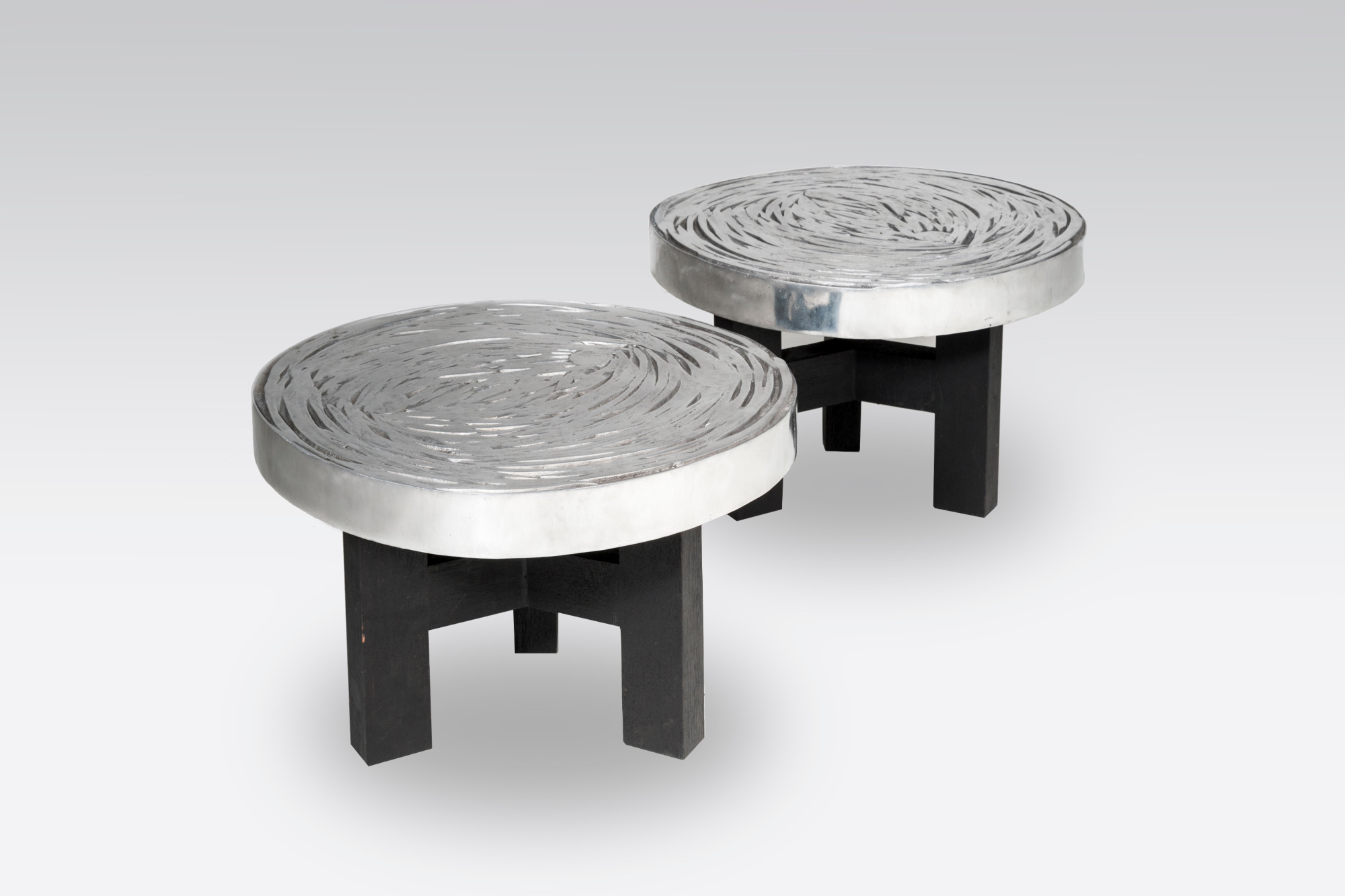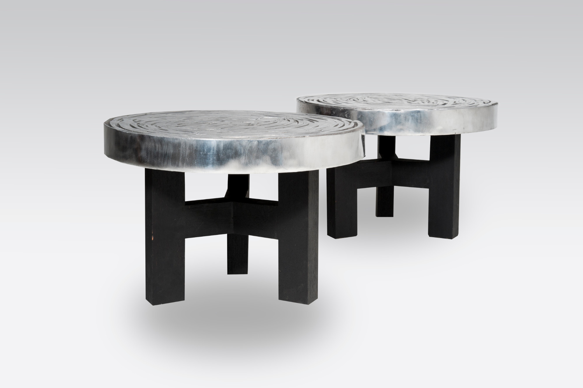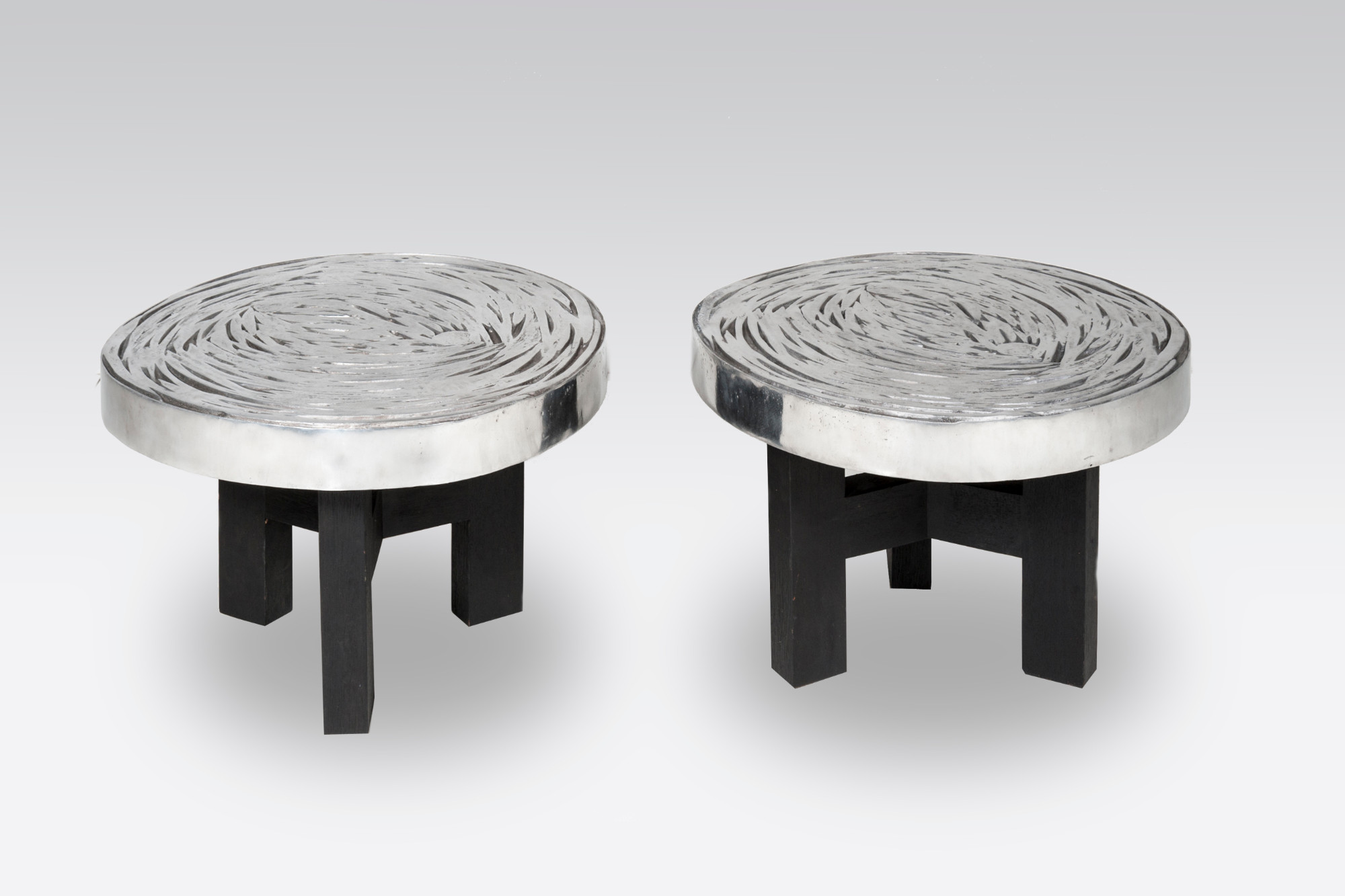 A pair of Side Table in aluminum By Ado Chale Circa's 1970, Signed by the artist. feet in black wood. perfect condition