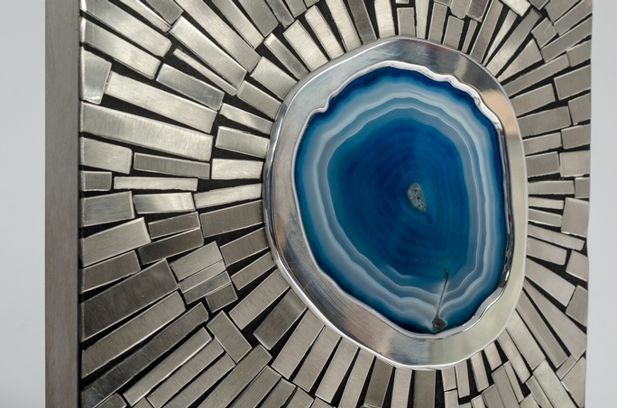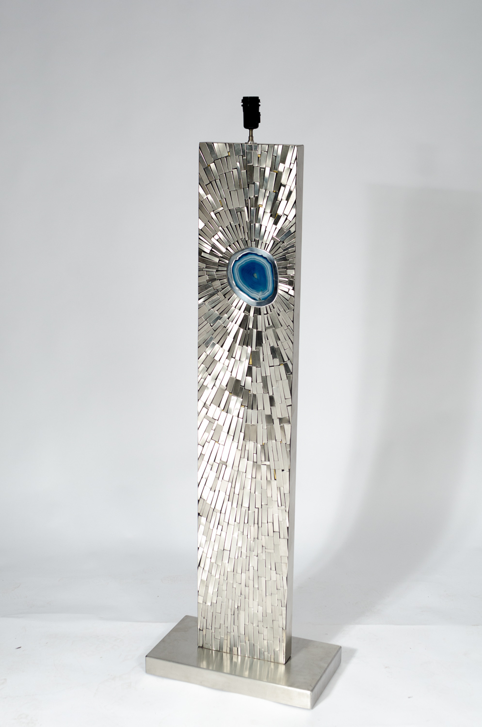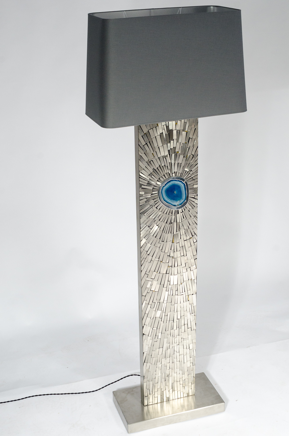 One of a kind studio built floorlamp ,Mosaic stainless steel, inlaid agate by Stan Usel.