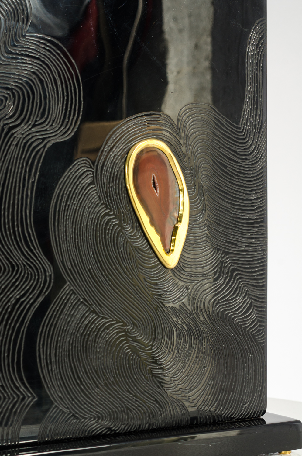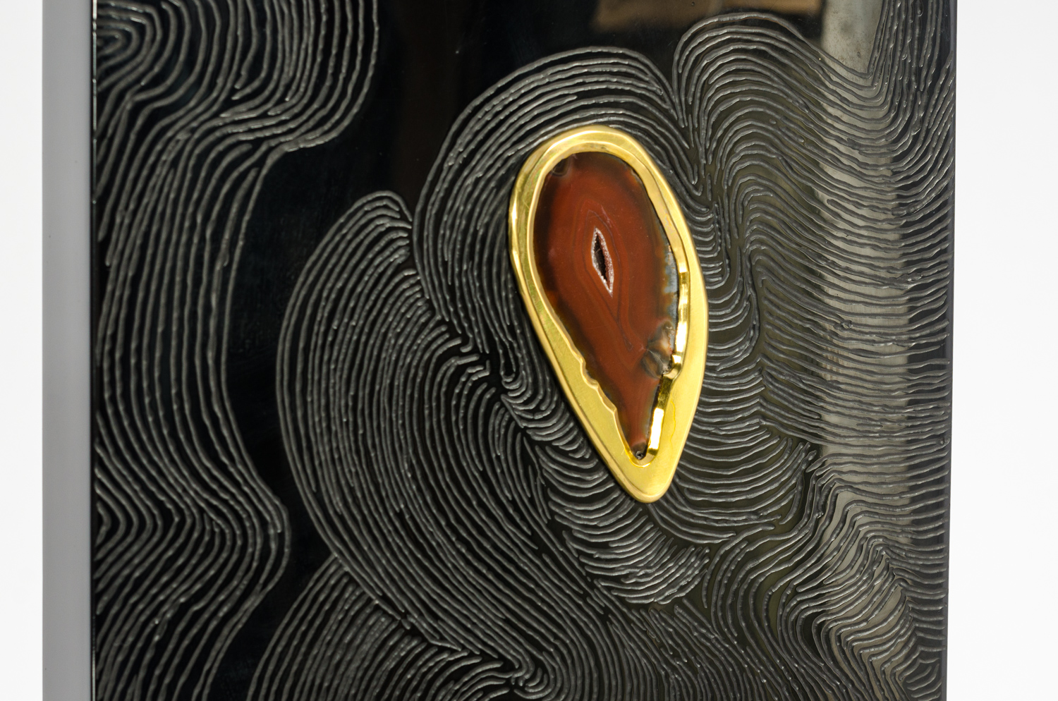 One of a kind studio built Pair of Table Lamps in black resin with inlaid agate by Stan Usel.