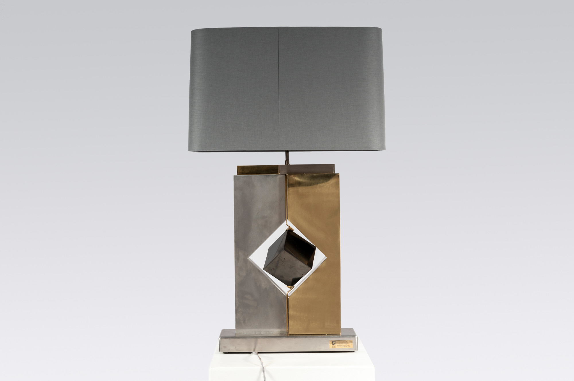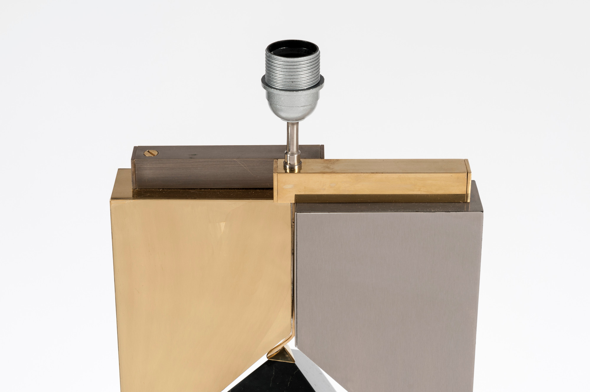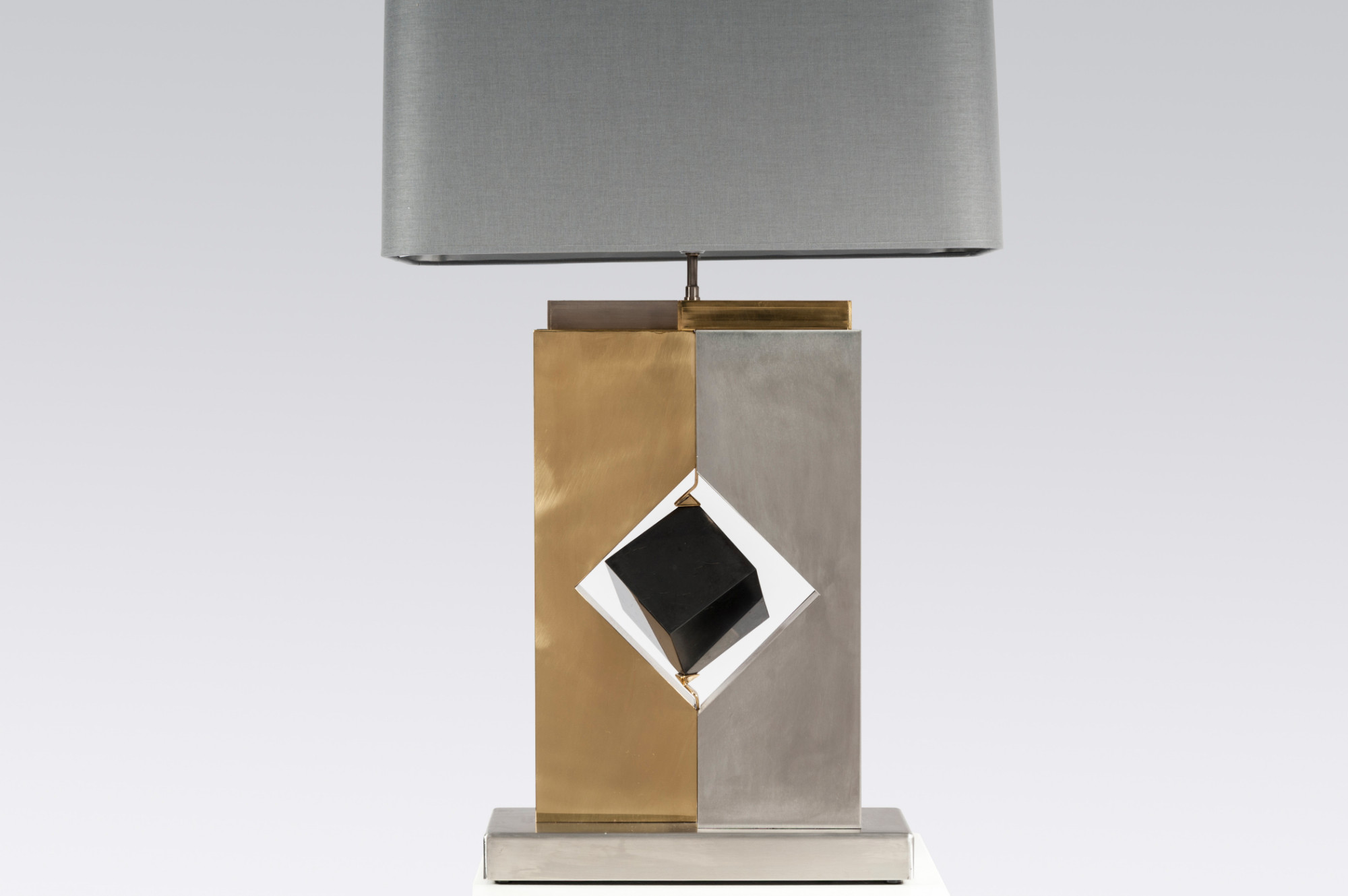 Created to measure by Stan Usel, this pair detail of Black marble cube,stainless steel and brass table lamps. Each piece is inlay with a unique stone and when put together aside gives a great sense of harmony. Exceptional craftsmanship with the art of tailor made furniture. This original and unique pieces are signed by the artist and comes with the certificate of authenticity.All pieces can be custom-made to order. Proudly Belgian.