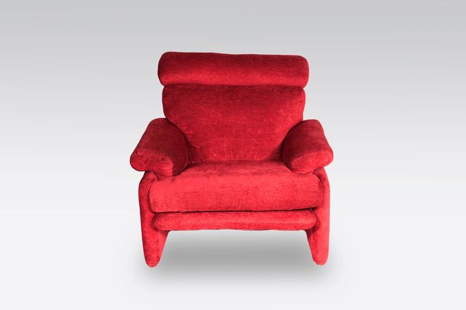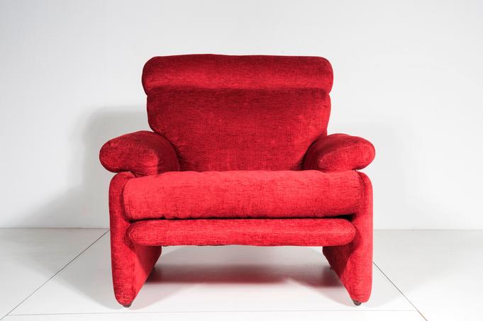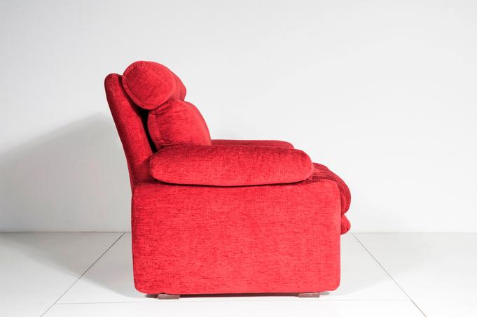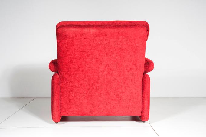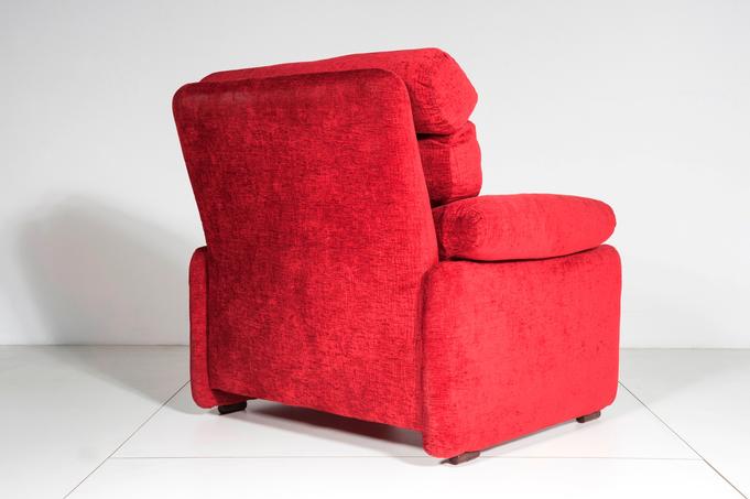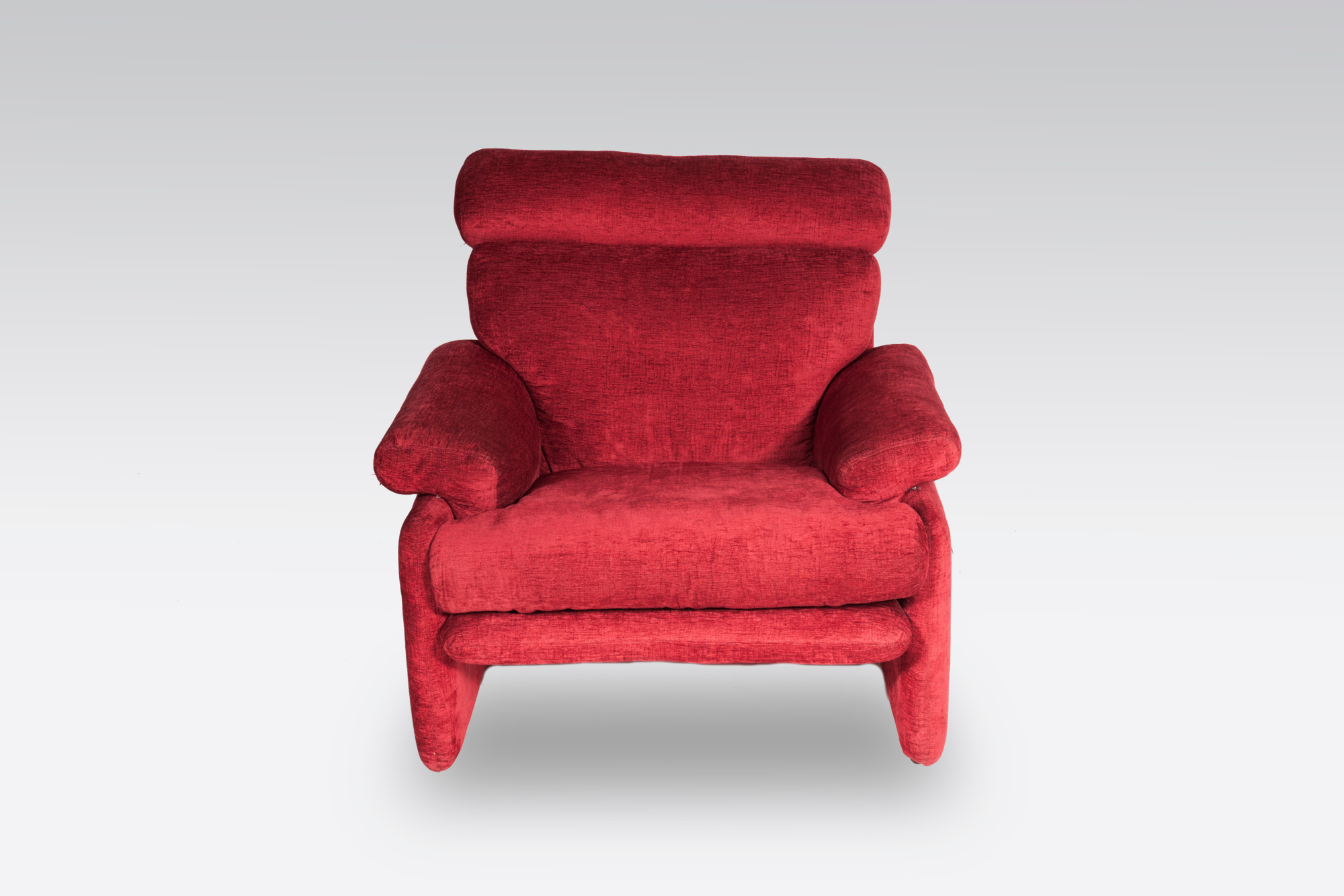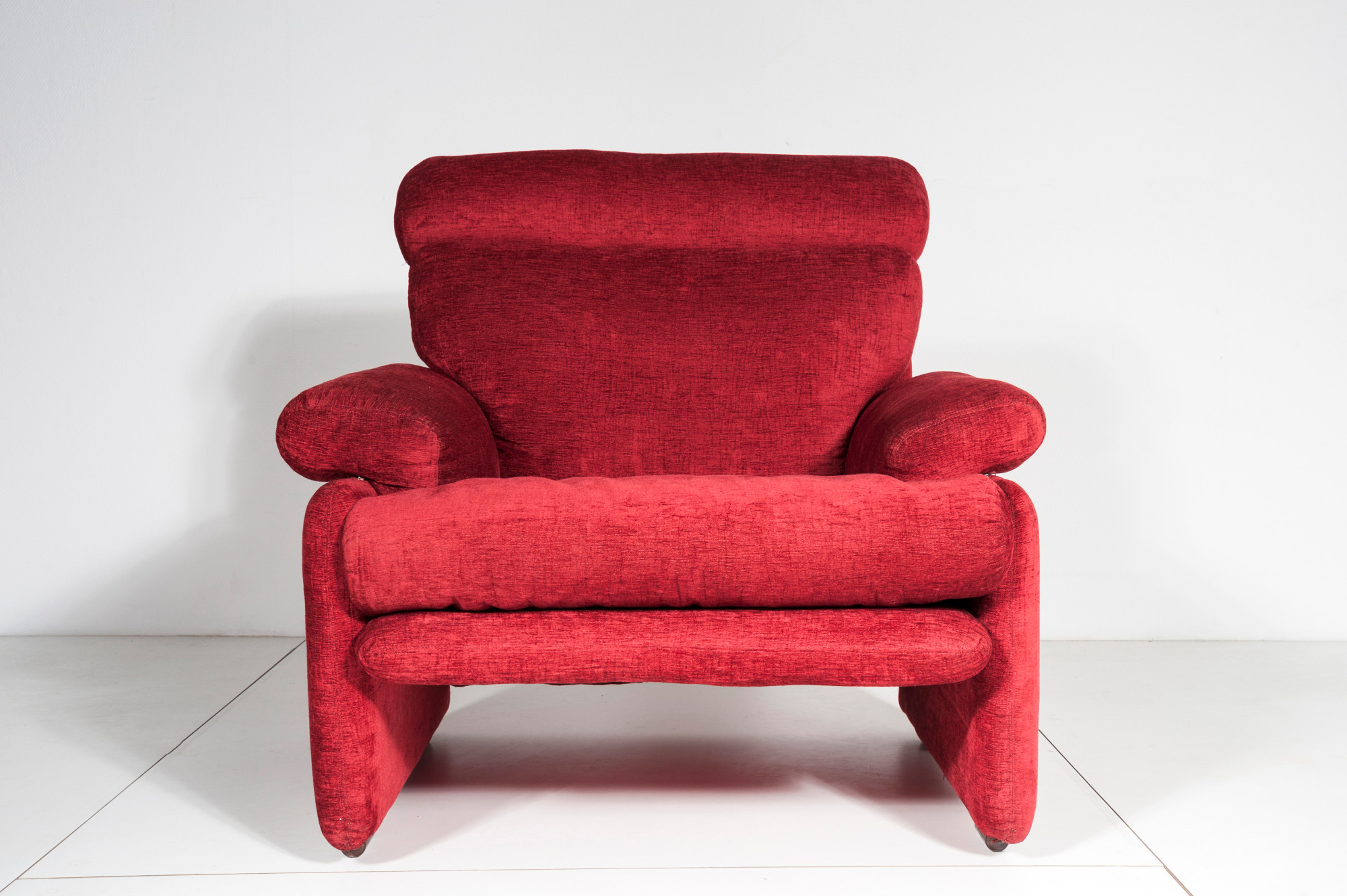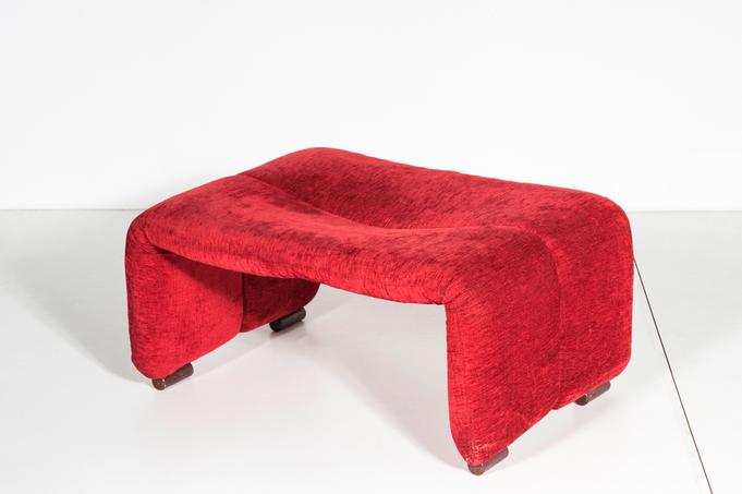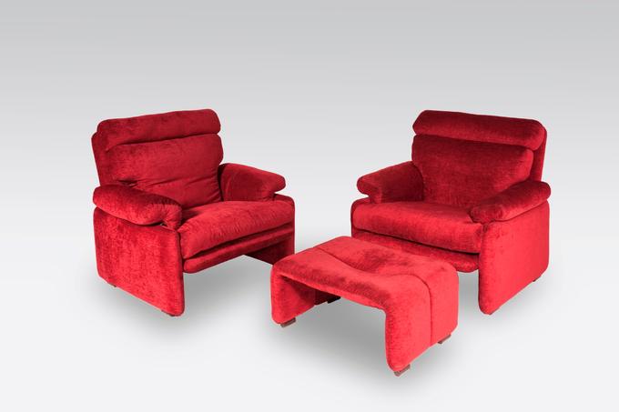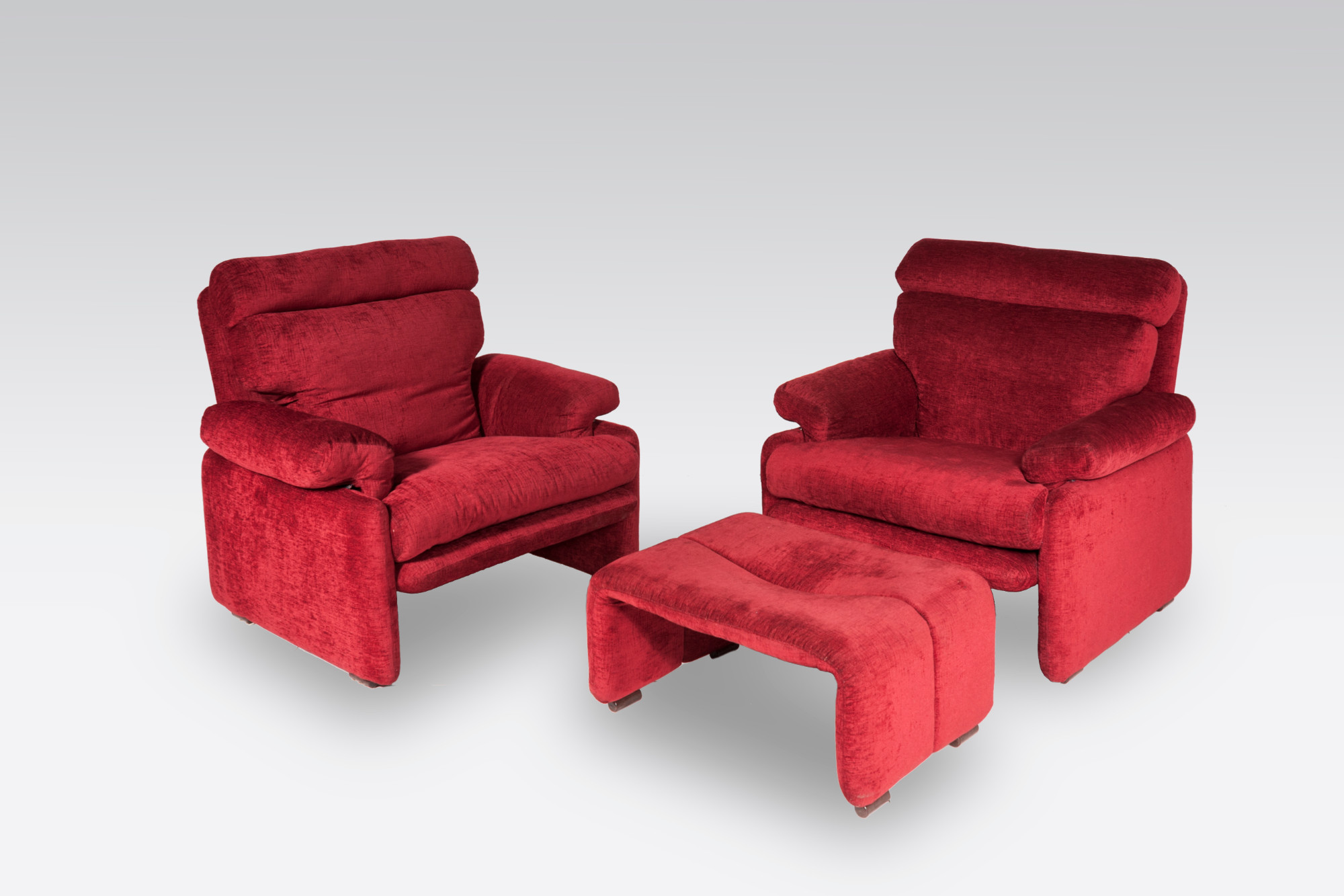 A Pair of Armchairs and gis ottoman model Coronado by Tobia Scarpa for B & B Italian, circa 1970s. Oxide red original velvet upholstery.