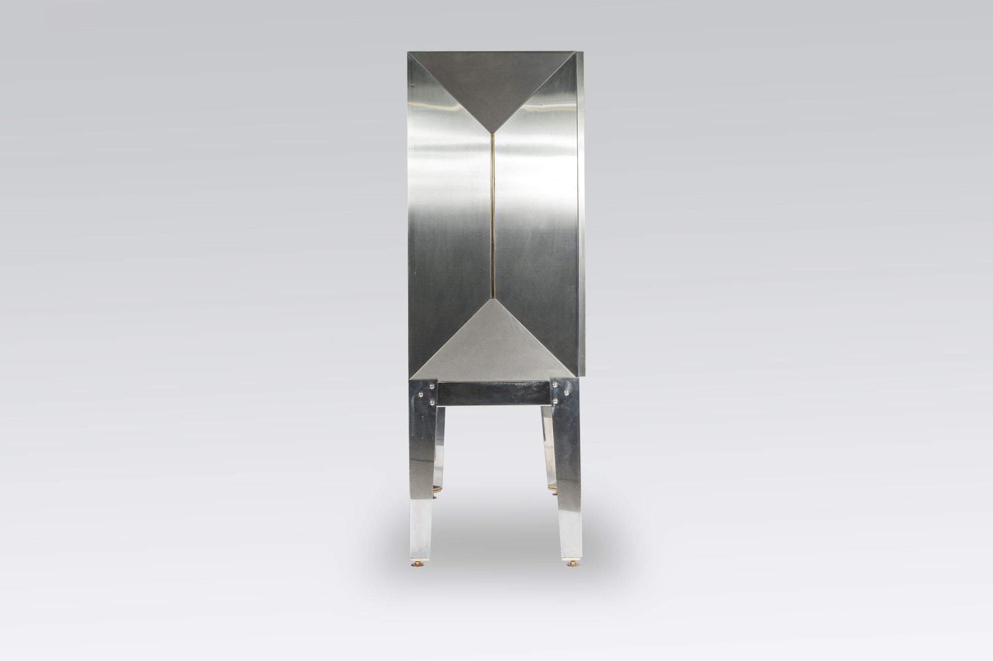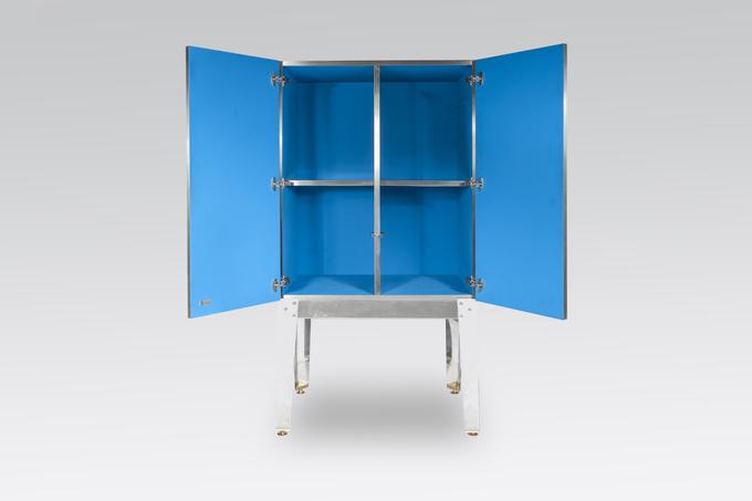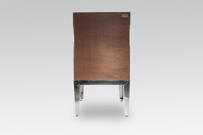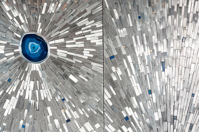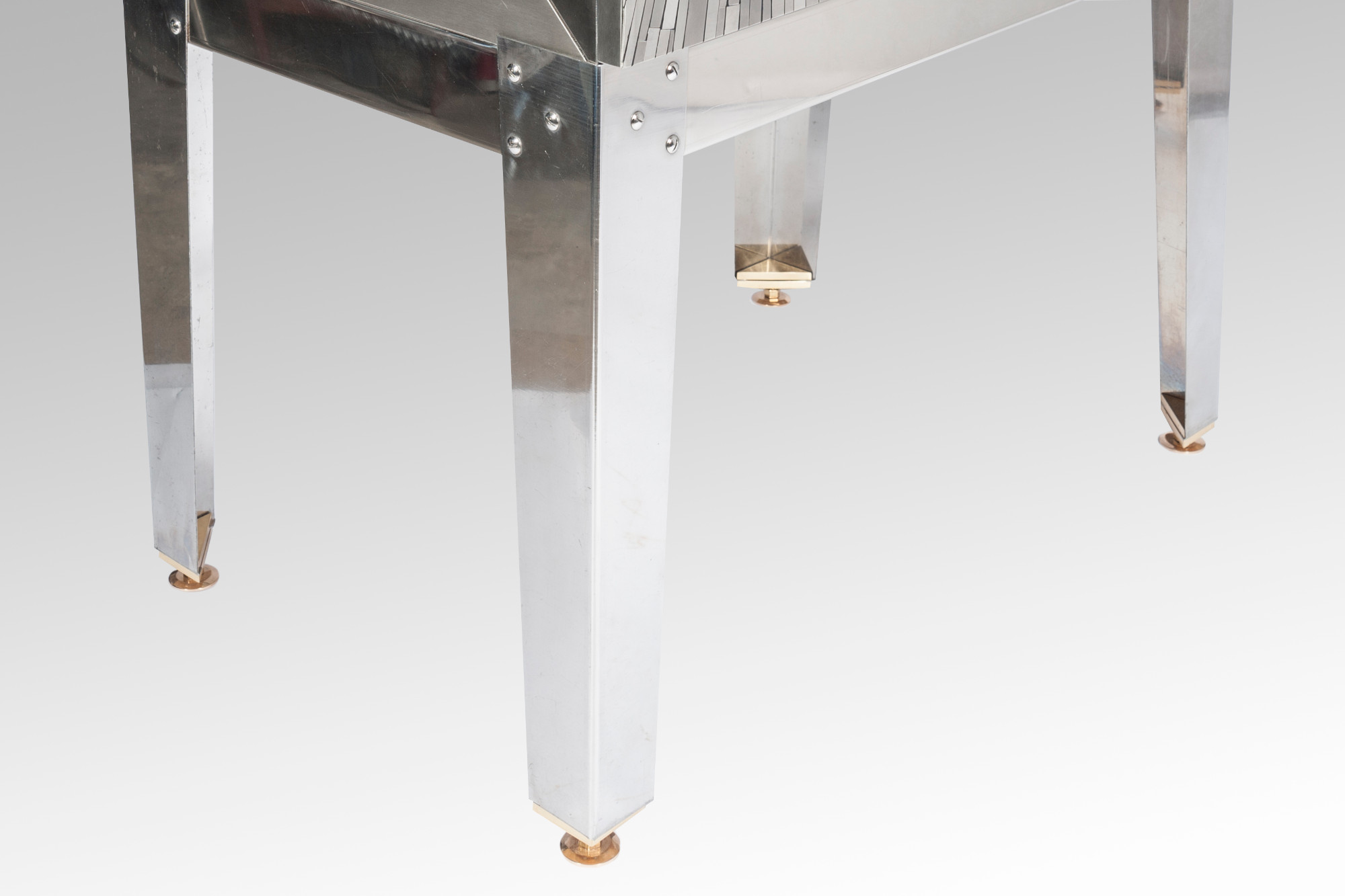 Created to measure by Stan Usel, this cabinet of stainless steel and brass is inserted with a magnificent agates stones highlighting a mosaic radiation. Different utility (bar,wardrobe,shelf) Each piece is topped with unique stones and is discretly designed to offer the ultimate connectivity for your needs. Exceptional craftsmanship with the art of tailor made furniture. This original and unique piece is signed by the artist and comes with a certificate of authenticity.All pieces can be custom-made to order. Proudly Belgian.